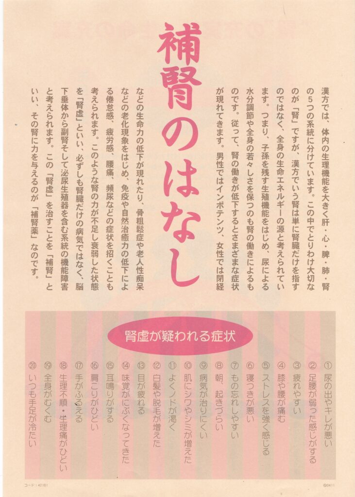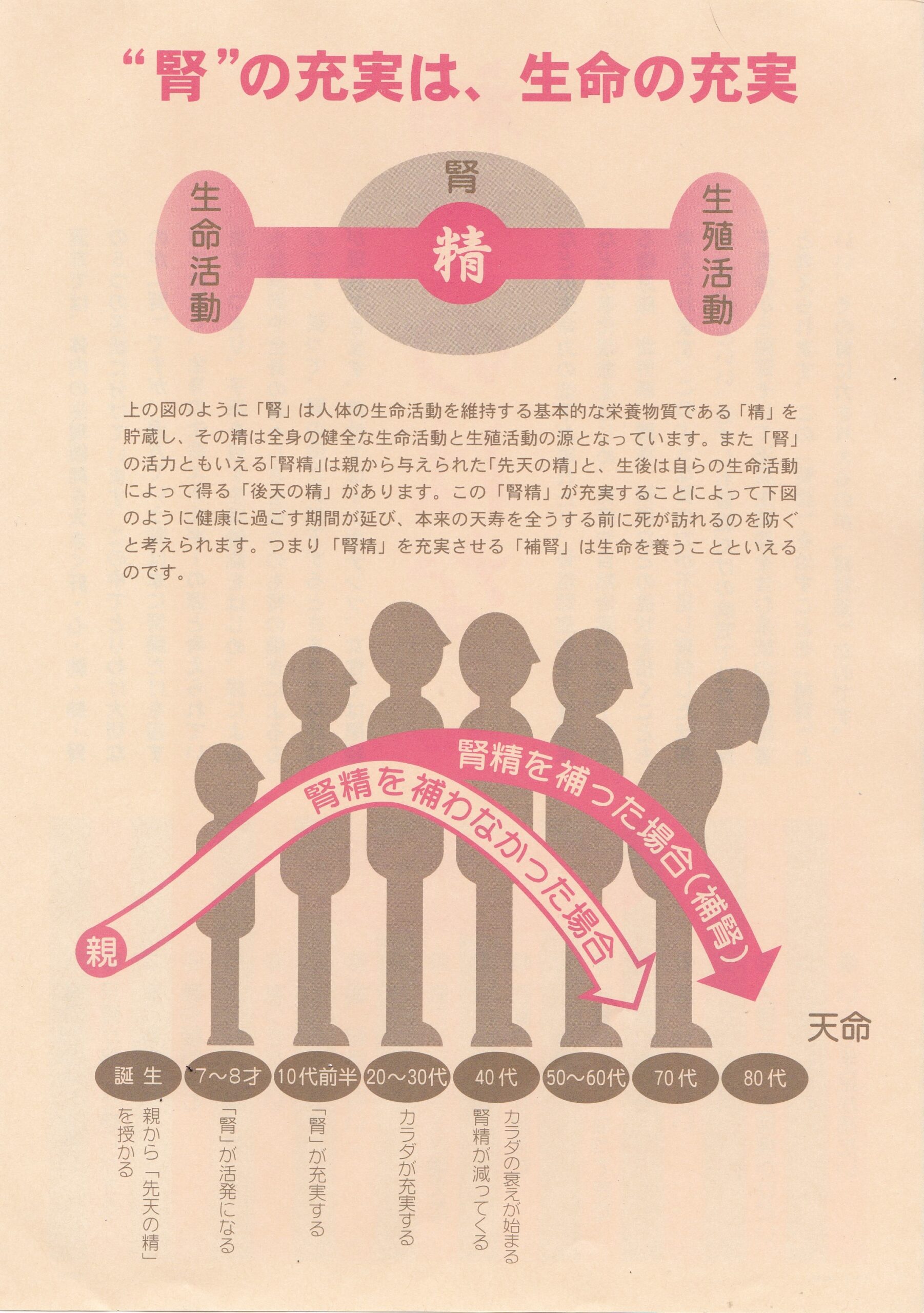 腎精は30代がピークと言われております。腎精を大切にしたいものですね。